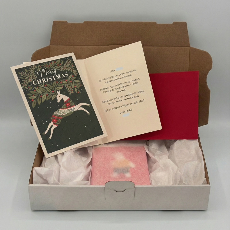 Begleitkarten deiner Wahl, mit deinem individuellen Text, um deinen Geschenken eine persönliche Note zu verleihen.